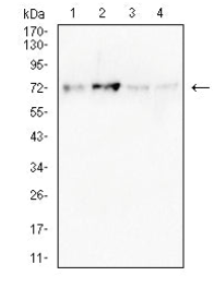 WB Predicted band size : 74KDa