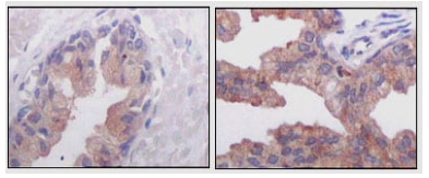 AMACR (alpha-methylacyl-CoA racemase) has been recently described as prostate cancer-specific gene that encodes a protein involved in the beta-oxidation of branched chain fatty acids. Expression of AMACR protein is found in prostatic adenocarcinoma but not in benign prostatic tissue. It stains premalignant lesions of prostate: high-grade prostatic intraepithelial neoplasia (PIN) and atypical adenomatous hyperplasia. AMACR can be used as a positive marker for PIN. Defects in AMACR are the cause of congenital bile acid synthesis defect type 4 (CBAS4); also known as cholestasis, intrahepatic, with defective conversion of trihydroxycoprostanic acid to cholic acid or trihydroxycoprostanic acid in bile. Clinical features include neonatal jaundice, intrahepatic cholestasis, bile duct deficiency and absence of cholic acid from bile.